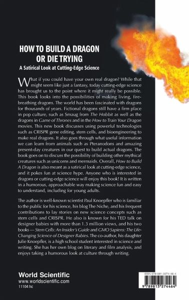 What if you could have your own real dragon? While that might seem like just a fantasy, today cutting-edge science has brought us to the point where it might really be possible. This book looks into the possibilities of making living, fire-breathing dragons. The world has been fascinated with dragons for thousands of years. Fictional dragons still have a firm place in pop culture, such as Smaug from The Hobbit as well as the dragons in Game of Thrones and in the How to Train Your Dragon movies. This new book discusses using powerful technologies such as CRISPR gene editing, stem cells, and bioengineering to make real dragons. It also goes through what useful information we can learn from animals such as Pteranodons and amazing present-day creatures in our quest to build actual dragons. The book goes on to discuss the possibility of building other mythical creatures such as unicorns and mermaids. Overall, How to Build A Dragon is also meant as a satirical look at cutting-edge science, and it pokes fun at science hype. Anyone who is interested in dragons or cutting-edge science will enjoy this book! It is written in a humorous, approachable way making science fun and easy to understand, including for young adults. The author is well-known scientist Paul Knoepfler who is familiar to the public for his science, his blog The Niche, and his frequent contributions to lay stories on new science concepts such as stem cells and CRISPR. He also is known for his TED talk on designer babies with more than 1.3 million views, and his two books — Stem Cells: An Insider's Guide and GMO Sapiens: The Life-Changing Science of Designer Babies. The co-author, his daughter Julie Knoepfler, is a high school student interested in science and writing. She has her own blog on literary and film analysis, and enjoys taking a humorous look at culture through writing.