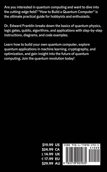 Are you interested in quantum computing and want to dive into the cutting-edge field? "How to Build a Quantum Computer" is the ultimate practical guide for hobbyists and enthusiasts. Dr. Edward Franklin breaks down the basics of quantum physics, logic gates, qubits, algorithms, and applications with step-by-step instructions, diagrams, and code examples. Learn how to build your own quantum computer, explore quantum applications in machine learning, cryptography, and optimization, and gain insight into the future of quantum computing. Join the quantum revolution today!