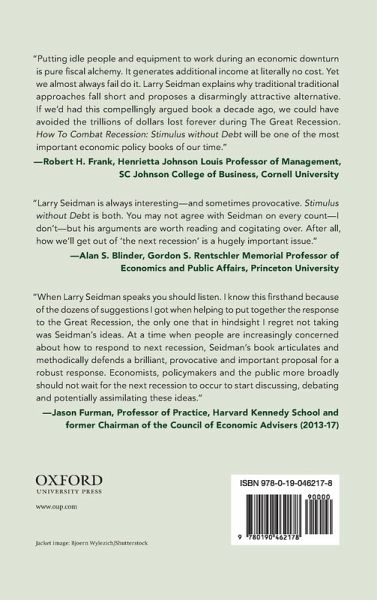 Recessions are a recurring phenomenon and there are repeated debates about how to combat them when the crisis hits and after the economy begins to grow again. Laurence Seidman argues that currently we are not ready to combat the next recession. A recession involves a plunge in aggregate demand for goods and services which compels producers to cut production and employment. Fortunately, a large boost in demand can be achieved by a large fiscal stimulus-primarily a temporary large increase in tax rebates for households plus several fiscal supplements. But fiscal stimulus has always involved a large increase in government debt, something Congress understandably resists. The assumption that a large fiscal stimulus requires an increase in government debt is false, Seidman asserts in this thought-provoking book. In fact, it is astonishingly easy to implement even a very large fiscal stimulus without any increase in government debt. All it takes is for Congress to enact a fiscal stimulus and the Federal Reserve to make a transfer (not loan) to the Treasury roughly equal to the fiscal stimulus so the Treasury doesn't have to borrow. Stimulus-without-debt consists of a transfer (not loan) from the Federal Reserve to the Treasury so that the Treasury does not have to borrow to finance fiscal stimulus enacted by Congress. Seidman explains all aspects of this new way to combat recession, "stimulus-without-debt." He presents evidence that fiscal stimulus works in a recession-it increases aggregate demand which stimulates production and employment. He explains why the fiscal stimulus should consist primarily of tax rebates for households plus several fiscal supplements. His analysis covers basic foundations as well as implications for inflation, central banks, and how to address secular stagnation. When the next recession hits, we will be ready to combat it if we know how to use fiscal stimulus without increasing government debt. Seidman shows us how.