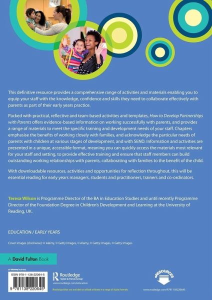 Acknowledgements Chapter 1: Making partnership with parents an outstanding quality in your setting Chapter 2: Policy, frameworks and the production of effective paperwork Chapter 3: Breaking down barriers Chapter 4: The beginning of your transformation: Parental engagement in your setting Chapter 5: Supporting transitions: Helping children and families adapt to change Chapter 6: Parental engagement in the baby room Chapter 7: Parental engagement in the toddler room Chapter 8: Parental engagement in the pre-school room Chapter 9: Creating a parent-friendly environment Chapter 10: Communication between parents and settings: Sharing children's development and progress Chapter 11: Working with families, special educational needs and disability Chapter 12: Concluding points Index