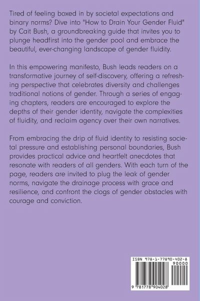 "How to Drain Your Gender Fluid" by Cait Bush is a groundbreaking guide that explores the complexities of gender fluidity and offers practical advice on navigating societal expectations, building resilience, and embracing one's true self. From understanding the power of fluidity to overcoming obstacles and envisioning a more inclusive future, this book is a must-read for anyone seeking to embrace their unique gender journey. Tired of feeling boxed in by societal expectations and binary norms? Dive into "How to Drain Your Gender Fluid" by Cait Bush, a groundbreaking guide that invites you to plunge headfirst into the gender pool and embrace the beautiful, ever-changing landscape of gender fluidity. In this empowering manifesto, Bush leads readers on a transformative journey of self-discovery, offering a refreshing perspective that celebrates diversity and challenges traditional notions of gender. Through a series of engaging chapters, readers are encouraged to explore the depths of their gender identity, navigate the complexities of fluidity, and reclaim agency over their own narratives. From embracing the drip of fluid identity to resisting societal pressure and establishing personal boundaries, Bush provides practical advice and heartfelt anecdotes that resonate with readers of all genders. With each turn of the page, readers are invited to plug the leak of gender norms, navigate the drainage process with grace and resilience, and confront the clogs of gender obstacles with courage and conviction. But "How to Drain Your Gender Fluid" isn't just a guidebook-it's a toolkit for transformation. With chapters dedicated to gender plumbing 101 and techniques for managing gender fluidity, readers are equipped with the tools and resources needed to craft their own authentic identities and navigate the ever-changing currents of gender expression. Throughout the book, Bush emphasizes the importance of community, self-care, and advocacy, encouraging readers to celebrate their true selves, embrace vulnerability, and imagine a future where gender inclusivity reigns supreme. With insightful reflections, empowering affirmations, and practical exercises, readers are empowered to make waves, challenge the status quo, and shape a more inclusive and accepting world for future generations. A great reference.