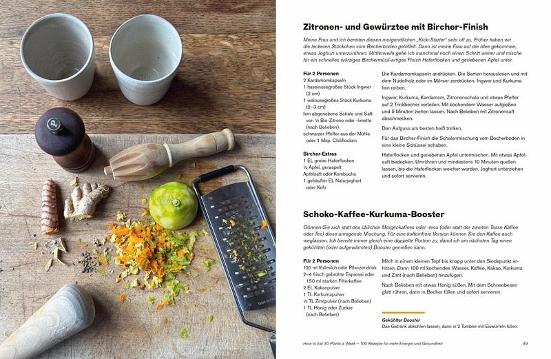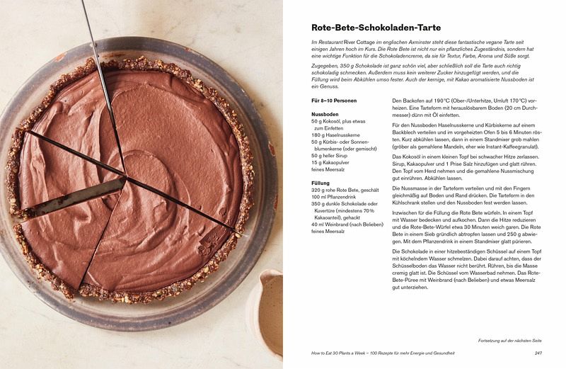 Übrigens kommen in diesem Kochbuch auch Fleischesser auf ihre Kosten und es zählen nicht nur Obst und Gemüse, sondern auch Nüsse, Samen, Hülsenfrüchte, Getreide, Kräuter, Gewürze, Kaffee ... und sogar Schokolade!