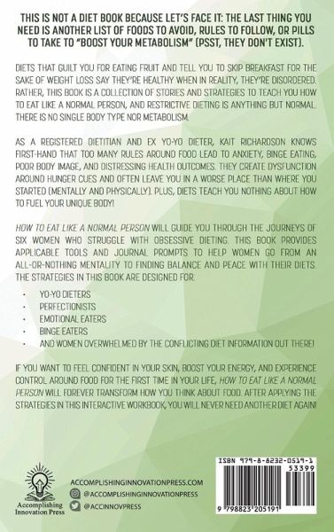 This book provides applicable tools and journal prompts to help women go from an all-or-nothing mentality to finding balance and peace with their diets