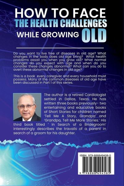 Do you have an elderly parent, uncle, or aunt at home? Are you middle aged expecting to retire in the next ten years? This book explains what changes normally occur in your body as you age. This is a must buy book for Senior Citizens. How will this book benefit you? Get to know….. · What changes in your health will you face when you grow older. · What are the ‘Normal’ versus the ‘Abnormal’ changes that occur when you become old. What are the changes that occur in the various organs and systems of your body. · What are the symptoms of various old age diseases. Know them and seek early and appropriate help. · How can you prevent the various diseases and ailments that distress you as your age advances. Prevention has been stressed in this book. · Know the Nutritional Requirements in old age.· Know in detail about Diabetes, and Heart Disease, two of the commonest diseases in old age.· What happens to your Bones and Joints with age.· What happens in your Ear, Nose and Throat as old age creeps in. This is a "must-have" book in every home, especially where there are elderly loved ones. Dr Sahasranam, a Senior, seasoned Cardiologist explains what you can do to face the hardships of old age. Buy and read this book now to know how you will be when you cross 60 and what your near and dear elders are going through, though they may not be willing to tell you.