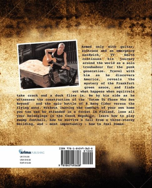 Armed only with guitar, suitcase and an emergency sandwich, TV Smith continues his journey around the world as a solo troubadour for the punk generation. Travel with him as he discovers America, reveals the mystery of the Frankfurt green sauce, and finds out what happens when squirrels take crack and a duck flies in. Be by his side as he witnesses the construction of the 'Totem To Those Who See Beyond' and the epic battle of B Bang Cider versus the flying ants. Without leaving the comfort of your own home you too can be stranded in a forest in Finland, lose all your belongings in the Czech Republic, learn how to play swamp football, how to survive a fall from a three-storey building, and - most importantly - how to feel human.