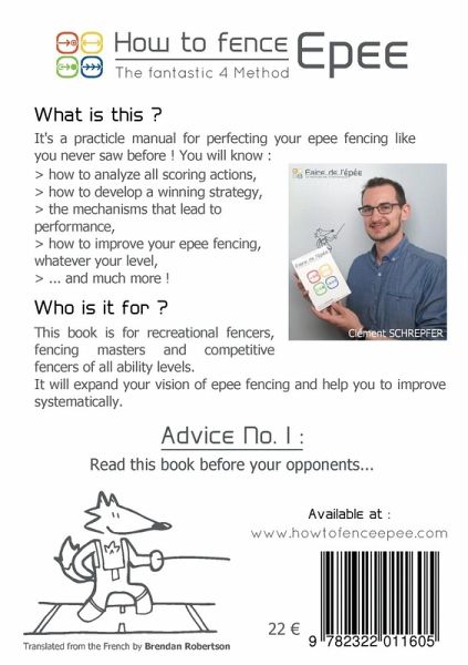 "How to fence Epee - The fantastic 4 method" is an explanatory concentration method to perfect his practice of fencing.It is the fruit of a reflection on several years of practice of epee fencing in competition at the highest level.A practical manual to help those who read it:- to understand the game via an innovative approach- to improve their competitive practice.This method is meant to be didactic, rational and adapted to all types of games. Rediscover fencing through a method designed to make you progress.