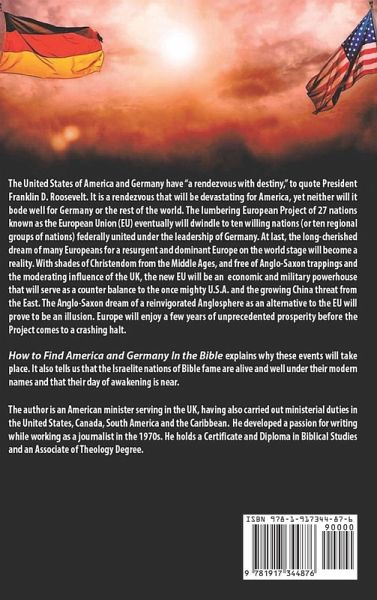 The United States of America and Germany have "a rendezvous with destiny," to quote President Franklin D. Roosevelt. It is a rendezvous that will be devastating for America, yet neither will it bode well for Germany or the rest of the world. The lumbering European Project of 27 nations known as the European Union (EU) eventually will dwindle to ten willing nations (or ten regional groups of nations) federally united under the leadership of Germany. At last, the long-cherished dream of many Europeans for a resurgent and dominant Europe on the world stage will become a reality. With shades of Christendom from the Middle Ages, and free of Anglo-Saxon trappings and the moderating influence of the UK, the new EU will be an economic and military powerhouse that will serve as a counter balance to the once mighty U.S.A. and the growing China threat from the East. The Anglo-Saxon dream of a reinvigorated Anglosphere as an alternative to the EU will prove to be an illusion. Europe will enjoy a few years of unprecedented prosperity before the Project comes to a crashing halt. How to Find America and Germany In the Bible explains why these events will take place. It also tells us that the Israelite nations of Bible fame are alive and well under their modern names and that their day of awakening is near.