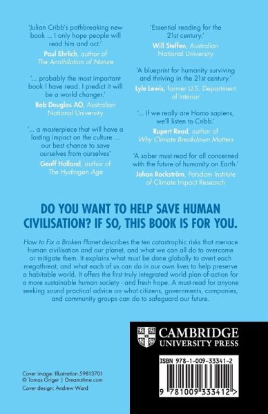 'Julian Cribb's pathbreaking new book, How to Fix a Broken Planet, looks squarely at the existential threats to our life-support systems and suggests how individuals and governments should take remedial action. I only hope people will read him and act.' Paul Ehrlich, author of The Annihilation of Nature