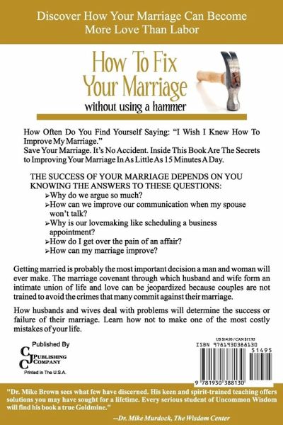 Although people may have the best intentions in building a strong relationship with their spouse, it is quite easy to fall into the traps that will do more to emasculate your relationship rather than build it. It is easy for most people to criticize their spouse for not being perfect while many ignore their own imperfections. Did you know that 43% of all married couples disagree over money issues, making it the primary reason for why couples fight? Money is a very big part of a marriage. As you know, lasting marriages do not happen by accident. In my book, "How to Fix Your Marriage" you'll find marriage advice, tips and help for establishing a healthy and happy marriage-that you always knew you could have. Whether you are in an unhappy marriage, want more romance in your marriage, trying to deal with the infidelity of your spouse, would like to improve your marriage communication skills, or contemplating marriage-"How to Fix Your Marriage" will provide you with the tools and information to improve your marriage.