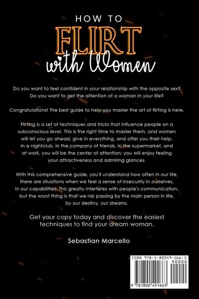 DISCOVER THE BEST TECHNIQUES TO GET THE ATTENTION OF WOMAN IN YOUR EVERYDAY LIFE WHO YOU LIKE, BUT DON'T DARE TO SPEAK TO HER Do you want to feel confident in your relationship with the opposite sex? Do you want to get the attention of a woman in your life? Congratulations! The best guide to help you master the art of flirting is here. Flirting is a set of techniques and tricks that influence people on a subconscious level. This is the right time to master them, and women will let you go ahead, give in everything, and offer you their help. In a nightclub, in the company of friends, in the supermarket, and at work, you will be the center of attention; you will enjoy feeling your attractiveness and admiring glances. Why Choose this Guide? The comprehensive understanding of Flirting Practical steps with easy to follow examples to a successful flirt On the road to success with women Why you need your self-confidence for amazing seduction Best ways to understand women body language How to discover valuable topics of conversation And much more! With this comprehensive guide, you'll understand how often in our life, there are situations when we feel a sense of insecurity in ourselves, in our capabilities. This greatly interferes with people's communication, but the worst thing is that we risk passing by the main person in life, by our destiny, our dreams. Hence, this is the time to learn to be prepared for any surprises on the difficult but exciting path to happiness and let the best techniques be your faithful companion and the ability to choose the right tactics of action correctly and on time. So, dear reader, boldly set out on the path to your happiness, to conquer women's hearts! Get your copy today and discover the easiest techniques to find your dream woman