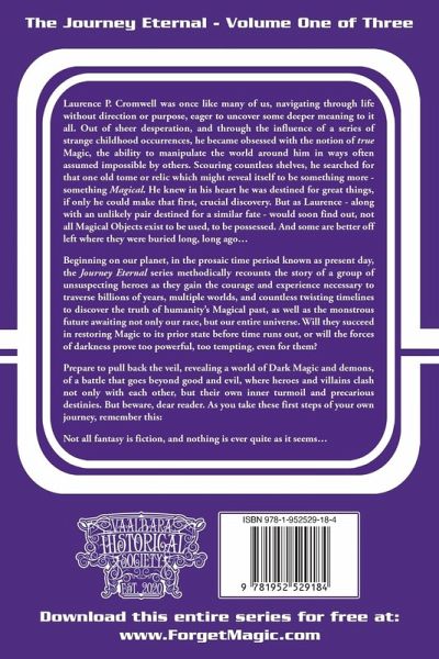 Laurence P. Cromwell was once like many of us, navigating through life without direction or purpose, eager to uncover some deeper meaning to it all. Out of sheer desperation, and through the influence of a series of strange childhood occurrences, he became obsessed with the notion of true Magic, the ability to manipulate the world around him in ways often assumed impossible by others. Scouring countless shelves, he searched for that one old tome or relic which might reveal itself to be something more - something Magical. He knew in his heart he was destined for great things, if only he could make that first, crucial discovery. But as Laurence - along with an unlikely pair destined for a similar fate - would soon find out, not all Magical Objects exist to be used, to be possessed. And some are better off left where they were buried long, long ago... Beginning on our planet, in the prosaic time period known as present day, the Vaal'bara Historical Society series methodically recounts the story of a group of unsuspecting heroes as they gain the courage and experience necessary to traverse billions of years, multiple worlds, and countless twisting timelines to discover the truth of humanity's Magical past, as well as the monstrous future awaiting not only our race, but our entire universe. Will they succeed in restoring Magic to its prior state before time runs out, or will the forces of darkness prove too powerful, too tempting, even for them? Prepare to pull back the veil, revealing a world of Dark Magic and demons, of a battle that goes beyond good and evil, where heroes and villains clash not only with each other, but their own inner turmoil and precarious destinies. But beware, dear reader. As you take these first steps of your own journey, remember this: Not all fantasy is fiction, and nothing is ever quite as it seems...