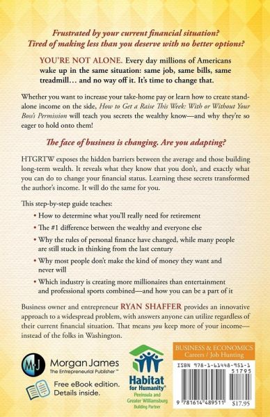 How to Get a Raise This Week: With or Without Your Boss's Permission is written from an employer’s point of view for employees, pulling back the curtain between employer and employee. Written in simple language anyone can understand, it outlays principles that apply to virtually everyone and that anyone can adhere to. How to Get a Raise This Week: With or Without Your Boss’s Permission details not only what an employer looks for prior to giving out a pay raise but also what a person can do when NOT given one. It also shatters common misconceptions about the current economy, explains why simply working harder no longer gets people ahead, and unveils a blueprint anyone can follow to expand their personal wealth.