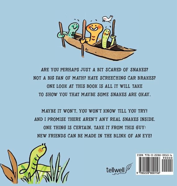 Are you perhaps just a bit scared of snakes? Not a big fan of math? Hate screeching car brakes? One look at this book is all it will take To show you that maybe some snakes are okay. Maybe it won't, you won't know till you try! And I promise there aren't any real snakes inside. One thing is certain, take it from this guy: New friends can be made in the blink of an eye!