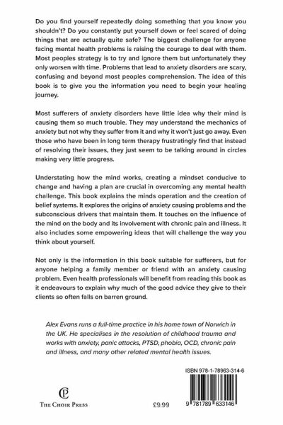 Anxiety causing disorders are scary, confusing and beyond most people's comprehension. The idea of this deliberately concise book is to give you the information and understanding that you'll need to begin your mental health healing journey as quickly as possible. Most sufferers of anxiety-causing disorders have little idea why their mind is seemingly working against them. They may understand the mechanics of anxiety but not why they suffer from it and why it won't just go away. Even those who have been in long term therapy frustratingly find that instead of resolving their issues, they just seem to be talking around in circles making very little progress. Understating how the mind works, creating a mindset conducive to change and having a plan of action are crucial in overcoming any mental health challenge. This book explains the mind's operation and the creation of belief systems. It explores the origins of anxiety causing problems and the subconscious drivers that maintain them. It touches on the influence of the mind on the body and its involvement with chronic pain and illness. It also includes some empowering ideas that will challenge the way you think about yourself. Not only is the information in this book suitable for sufferers, but for anyone helping a family member or friend with an anxiety causing problem. Even health professionals will benefit from reading this book as it endeavours to explain why much of the good advice they give to their clients so often falls on barren ground.