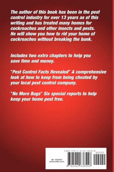 A low cost, efficient and effective way to rid your home of cockroaches without the large expense of calling your local pest control company. The only information you will need to get rid of cockroaches. Fully illustrated with step by step instructions. Includes "Six special reports to help keep your home pest free" and "How to keep from being cheated by your local pest control company". This book was written by an 18 year veterian of the pest control industry. Printed: 76 pages, 6" x 9", perfect binding, cream interior paper (60# weight), black and white interior ink, white exterior paper…mehr