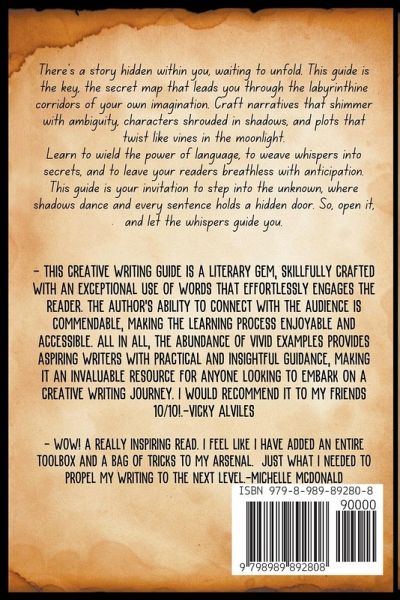 ABOUT THIS BOOK How To Guide The Art of Creative Writing is an in depth whimsically written guide to writing creatively as well as an inspirational journey through the art of storytelling. This how to guide magically weaves inspiration and guidance for aspiring writers of all levels, from beginners crafting their first short stories to seasoned authors tackling ambitious novels. "How To Guide The Art of Creative Writing" is a guide for the ambitious author to unlock the secrets of plot development, compelling characters, crafting comprehensive narratives, and mastering the art of prose. The book helps writers navigate through the creation of setting, mastering the art of world-building, from crafting immersive historical landscapes to conjuring futuristic cityscapes that pulsate with life. It reads easily with examples and helpful hints, guiding the writer tenaciously into the depths of creative writing. It strives to show a writer how to harness the sensory details of sight, sound, smell, and touch to make words leap off the page and into the reader's imagination. From beginner to seasoned professional, this book is an inspirational journey through the twists and turns of writing anything from a creative short story to a full-blown novel, even tackling medium-content books along the way. So, whether you're a fledgling author dipping your toes into the inkwell or a seasoned wordsmith seeking to refine your craft, crack open "How To Guide The Art of Creative Writing" and prepare to be swept away by the magic of storytelling. MORE TO COME Look for the How To Guide The Art Of Creative Writing workbook soon to accompany this book.
