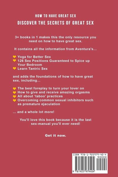 Dramatically Improve Your Sex Life! 3+ books in 1 makes this the only resource you need on how to have great sex. It contains all the information from:Yoga for Better Sex 126 Sex Positions Guaranteed to Spice up Your Bedroom Learn Tantric Sex ... and adds a whole lot more! This is a must-have in your collection, because it is the only sex-manual you'll ever need. Get it now. Discover the Foundations of Great SexThe best foreplay to turn your lover on How to give and receive amazing orgasms All about taboo practices Overcoming common sexual inhibitors such as premature ejaculation All the Sex Positions You'll Ever NeedNo two positions are repeated! From easy to athletic From the very intimate to the downright dirty Sexual positions for every couple Grouped for easy reference Easy to follow descriptions and tasteful illustrations Yoga Routines to Increase Your Sexual PleasureImprove emotional and sexual connection Alleviate sexual dysfunctions Intensify orgasms Increase sexual stamina Solo and partnered yoga routines Unleash the Pleasure of Tantric SexCultivate the mindset of the tantric lover to get the most out of your tantric romance How to create a personal space most conducive to tantric sexual practice Learn about chakras and how they play an important part in tantric sex Ancient tantric and yogi rituals to open yourself to a higher sexual awakening Understand exactly how orgasms work, and how to use the knowledge for maximum sexual pleasure Learn all the above and more! Limited Time Only... Get your copy of How to Have Great Sex today and you will also receive:Free SF Nonfiction Books new releases Exclusive discount offers Downloadable sample chapters Bonus content ... and more! Turn good sex into great sex, because this book has all the secrets you need. Get it now.