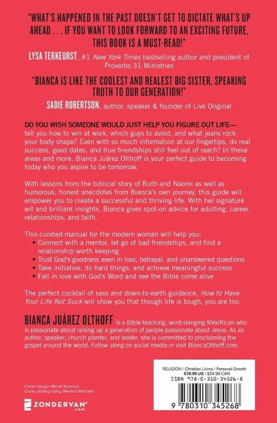 Do you ever just want someone to help you figure life out--to tell you how to win at work, what guys to stay away from, and what jeans rock your body shape? This book is the perfect cocktail of sass and down-to-earth guidance to navigate your way to the life you want to live. With so much information at your fingertips, real success, good dates, and true friendships can often feel out of reach. Packed with lessons learned from her own mistakes and heartache, Bianca Juarez Olthoff is your guide (minus the cargo shorts and tacky hat) in avoiding unnecessary detours on the path to your best self. With her signature wit, engaging stories, and brilliant insights from a counselor friend, Bianca gives spot-on advice for adulting, career, relationships, and faith. Following the biblical story of Ruth and Naomi, Bianca's humorous and honest anecdotes will empower you to create a successful life and discover all you can be. This curated manual for the modern woman will help you: * Connect with a mentor, let go of bad friendships, and find a relationship worth keeping * Trust the goodness of God even in loss, betrayal, and unanswered questions * Take initiative, do hard things, and achieve meaningful success * Fall in love with God's Word and see the Bible come alive Bianca will show you that though life is tough, you are too.