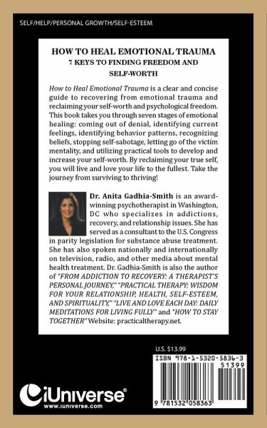 How to Heal Emotional Trauma is a clear and concise guide to recovering from emotional trauma and reclaiming your self-worth and psychological freedom. This book takes you through seven stages of emotional healing: coming out of denial, identifying current feelings, identifying behavior patterns, recognizing beliefs, stopping self-sabotage, letting go of the victim mentality, and utilizing practical tools to develop and increase your self-worth. By reclaiming your true self, you will live and love your life to the fullest. Take the journey from surviving to thriving!