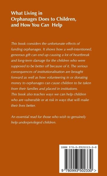 This book considers the unfortunate effects of funding orphanages. It shows how a well-intentioned, generous gift can end up causing a lot of heartbreak and long-term damage for the children who were supposed to be better off because of it. The serious consequences of institutionalisation are brought forward as well as how volunteering in or donating money to orphanages can cause children to be taken from their families and placed in institutions. This book also teaches ways we can help children who are vulnerable or at risk in ways that will make their lives better. An essential read for those who wish to genuinely help underprivileged children.