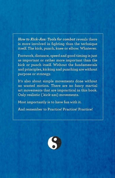 'How to Kick-Ass: Tools for combat' reveals there is more involved in fighting than the technique itself. The kick, punch, knee or elbow. Whatever.Footwork, distance, speed and good timing is just as important or rather more important than the kick or punch itself. Without the fundamentals and principles, kicking and punching are without purpose or strategy. It's also about simple movements done without no wasted motion. There are no fancy martial art movements that are impractical in this book. Only realistic ( kick-ass) movements.Most importantly is to have fun with it.And remember to Practice! Practice! Practice!