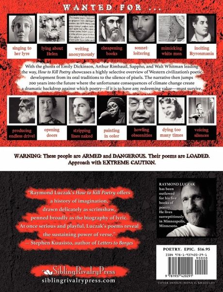 With the ghosts of Emily Dickinson, Arthur Rimbaud, Sappho, and Walt Whitman leading the way, How to Kill Poetry showcases a highly selective overview of Western civilization poetic development from its oral traditions to the silence of pixels. The narrative then jumps 200 years into the future where the unfortunate consequences of global warming create a dramatic backdrop against which poetry--if it is to have any redeeming value--must survive.