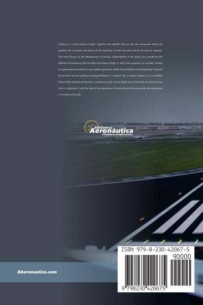Landing is a critical phase of flight. Together with takeoff, they are the two maneuvers where the greatest risk is present and where all the capacities of both the pilot and the aircraft are required. This work focuses on the development of landing, independently of the plane, but considering the different circumstances that can affect this phase of flight. A work that proposes to consider landing as a generalized procedure in any airplane, giving the reader the possibility of understanding it beyond the aircraft it can fly. Landing is landing! Whether in a Cessna 152, a Cessna Citation, or an incredible Airbus A320, landing will become a constant on each of your flights and in this book we will teach you how to understand it with the help of the experience of international airline pilots with vast experience in hundreds of aircraft.