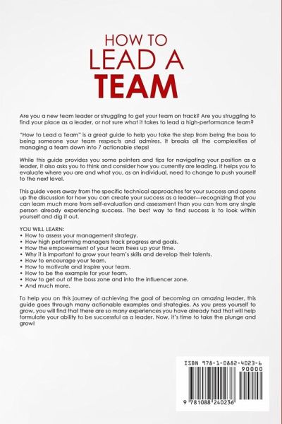 Are you a new team leader or struggling to get your team on track? Are you struggling to find your place as a leader, or not sure what it takes to lead a high-performance team? "How to Lead a Team" is a great guide to help you take the step from being the boss to being someone your team respects and admires. It breaks all the complexities of managing a team down into 7 actionable steps! While this guide provides you some pointers and tips for navigating your position as a leader, it also asks you to think and consider how you currently are leading. It helps you to evaluate where you are and what you, as an individual, need to change to push yourself to the next level. The guide veers away from the specific technical approaches for your success and opens up the discussion for how you can create your success as a leader-recognizing that you can learn much more from self-evaluation and assessment than you can from any single person already experiencing success. The best way to find success is to look within yourself and dig it out. YOU WILL LEARN:How to assess your management strategy. How high performing managers track progress and goals. How the empowerment of your team frees up your time. Why it is important to grow your team's skills and develop their talents. How to encourage your team. How to motivate and inspire your team. How to be the example for your team. How to get out of the boss zone and into the influencer zone. And much more. To help you on this journey of achieving the goal of becoming an amazing leader, this guide goes through many actionable examples and strategies. As you press yourself to grow, you will find that there are so many experiences you have already had that will help formulate your ability to be successful as a leader. Now, it's time to take the plunge and grow!