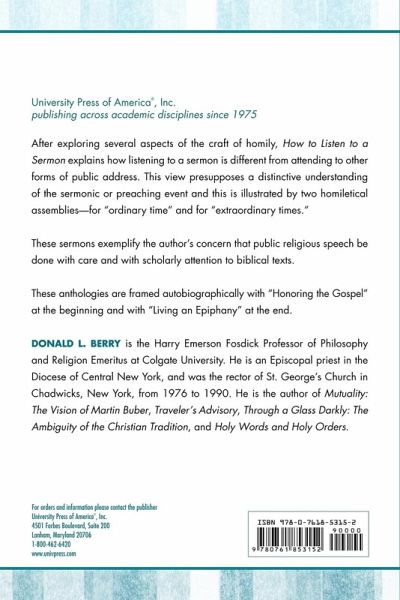 After exploring several aspects of the craft of homily, this book explains how listening to a sermon is different from attending to other forms of public address. This view presupposes a distinctive understanding of the sermonic or preaching event and this is illustrated by two homiletical assemblies.