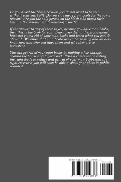 Do you avoid the beach because you do not want to be seen without your shirt off? Do you stay away from pools for the same reason? Are you the only person on the block who mows their lawn in the summer while wearing a shirt? If the answer to any of those is yes, because you have man boobs, then this is the book for you. Learn why diet and exercise alone have not gotten rid of your man boobs and learn what you can do about it. We know that man boobs are embarrassing and we also know how and why you have them and why they are so persistent. You can get rid of your man boobs by making a few changes around the house and to your diet. With a combination eating the right foods to reduce and get rid of your man boobs and the right exercises, you will soon be able to show your chest in public proudly!