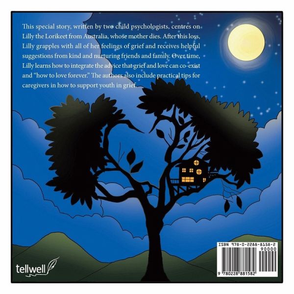This special story, written by two child psychologists, centres on Lilly the Lorikeet from Australia, whose mother dies. After this loss, Lilly grapples with all of her feelings of grief and receives helpful suggestions from kind and nurturing friends and family. Over time, Lilly learns how to integrate the advice that grief and love can co-exist and "how to love forever." The authors also include practical tips for caregivers in how to support youth in grief.