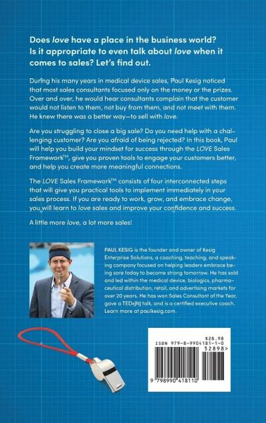 Does love have a place in the business world? Is it appropriate to even talk about love when it comes to sales? Let's find out. During his many years in medical device sales, Paul Kesig noticed that most sales consultants focused only on the money or the prizes. Over and over, he would hear consultants complain that the customer would not listen to them, not buy from them, and not meet with them. He knew there was a better way-to sell with love. Are you struggling to close a big sale? Do you need help with a challenging customer? Are you afraid of being rejected? In this book, Paul will help you build your mindset for success through the LOVE Sales FrameworkTM, give you proven tools to engage your customers better, and help you create more meaningful connections. The LOVE Sales FrameworkTM consists of four interconnected steps that will give you practical tools to implement immediately in your sales process. If you are ready to work, grow, and embrace change, you will learn to love sales and improve your confidence and success. A little more love, a lot more sales!