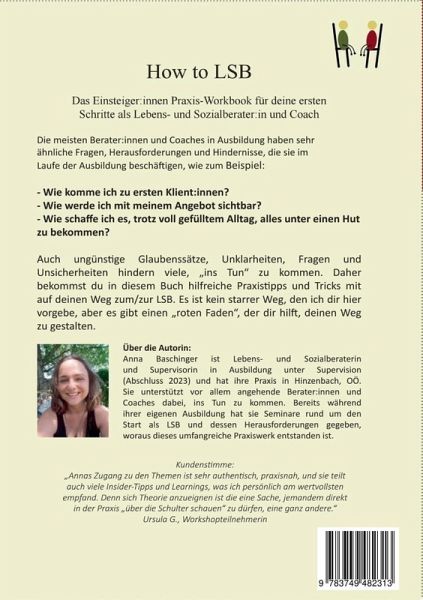 Die meisten Berater:innen und Coaches in Ausbildung haben sehr ähnliche Fragen, Herausforderungen und Hindernisse, die sie im Laufe der Ausbildung beschäftigen, wie zum Beispiel:- Wie komme ich zu ersten Klient:innen?- Wie werde ich mit meinem Angebot sichtbar?- Wie schaffe ich es, trotz vollem Alltag, alles unter einen Hut zu bekommen?Auch ungünstige Glaubenssätze, Unklarheiten, Fragen und Unsicherheiten hindern viele, ins Tun zu kommen. Daher bekommst du in diesem Buch hilfreiche Praxistipps und Tricks mit auf deinen Weg zum LSB. Es ist kein starrer Weg, den ich dir hier vorgebe, aber es gibt einen roten Faden, der dir hilft, deinen Weg zu gestalten.