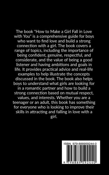 The book "How to Make a Girl Fall in Love with You" is a comprehensive guide for boys who want to find love and build a strong connection with a girl. The book covers a range of topics, including the importance of being confident, genuine, respectful, and considerate, and the value of being a good listener and having ambitions and goals in life. It provides practical advice and real-life examples to help illustrate the concepts discussed in the book. The book also helps boys to understand what girls are looking for in a romantic partner and how to build a strong connection based on mutual respect, values, and interests. Whether you are a teenager or an adult, this book has something for everyone who is looking to improve their skills in attracting and falling in love with a girl.