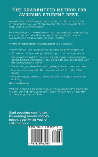 The guaranteed method for avoiding student debt. Today, the average student loan stands at around $32,000, and research shows that it takes about 21 years for a college graduate to pay off their loan. How can a young adult start off their career on the right foot when they already owe tens of thousands of dollars? Then every month for the next 21 years, having to set aside hundreds of dollars for debt payment, while also having to pay for rent, food, and transportation? This is a situation millions of Americans are facing today. Carrying this debt has hindered their ability to save for retirement, or to buy their own home. If you don't want to be part of this statistic, the best way would be to avoid student debt in the first place, or at least lessen the amount of debt you need to take on. Aside from scholarships and grants, you can take an active role in ensuring that you won't have to carry the burden of debt for a large part of your working life. By finding ways to make money on the side while you're still young, you can build up a fund to be used to pay for tuition, school expenses, or a big purchase, like a new laptop. No need to ask for money from mom or dad. In How to Make Money in High School and College, you will discover: ¿ How you can earn passive income while still attending school ¿ 30 diverse money-making ideas that you can start right away ¿ The unglamorous jobs that can actually make you hundreds of dollars in tips ¿ How to make $1,000 extra cash over a weekend with this fun scavenging racket ¿ The #1 thing you need to avoid getting screwed over by a client ¿ How to use your side hustle as a jump-off point to a lucrative career ¿ Why some jobs are worth taking on, even if the pay may seem not so enticing And much more.... With the variety of options available for you to choose from, you don't have to worry about not having the skills or time for a side hustle. There are plenty of jobs you can do in your spare time that don't require you to be an expert coder. And you also don't have to limit yourself to just one side hustle. The big advantage of being young is having loads of energy to spare. Why not channel that energy to something that will bring you financial rewards? Whether college is still years away, or you're already in college and in debt, earning some extra cash today will give you a head-start on preparing for your future. If you want to start securing your future by earning serious money today, even while you're still in school, then Click "Add To Cart" right now.