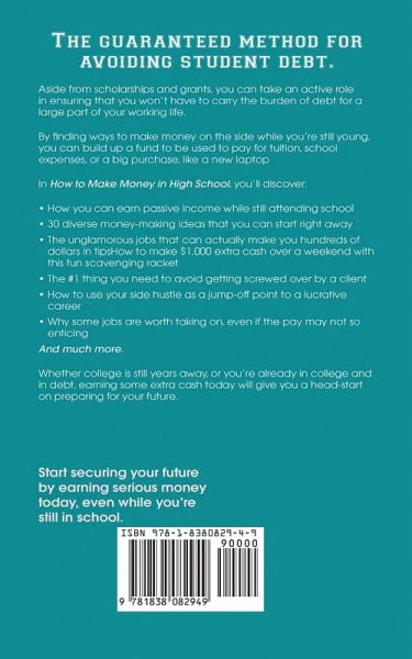 The guaranteed method for avoiding student debt. Today, the average student loan stands at around $32,000, and research shows that it takes about 21 years for a college graduate to pay off their loan. How can a young adult start off their career on the right foot when they already owe tens of thousands of dollars? Then every month for the next 21 years, having to set aside hundreds of dollars for debt payment, while also having to pay for rent, food, and transportation? This is a situation millions of Americans are facing today. Carrying this debt has hindered their ability to save for retirement, or to buy their own home. If you don't want to be part of this statistic, the best way would be to avoid student debt in the first place, or at least lessen the amount of debt you need to take on. Aside from scholarships and grants, you can take an active role in ensuring that you won't have to carry the burden of debt for a large part of your working life. By finding ways to make money on the side while you're still young, you can build up a fund to be used to pay for tuition, school expenses, or a big purchase, like a new laptop. No need to ask for money from mom or dad. In How to Make Money in High School and College, you will discover: ¿ How you can earn passive income while still attending school ¿ 30 diverse money-making ideas that you can start right away ¿ The unglamorous jobs that can actually make you hundreds of dollars in tips ¿ How to make $1,000 extra cash over a weekend with this fun scavenging racket ¿ The #1 thing you need to avoid getting screwed over by a client ¿ How to use your side hustle as a jump-off point to a lucrative career ¿ Why some jobs are worth taking on, even if the pay may seem not so enticing And much more.... With the variety of options available for you to choose from, you don't have to worry about not having the skills or time for a side hustle. There are plenty of jobs you can do in your spare time that don't require you to be an expert coder. And you also don't have to limit yourself to just one side hustle. The big advantage of being young is having loads of energy to spare. Why not channel that energy to something that will bring you financial rewards? Whether college is still years away, or you're already in college and in debt, earning some extra cash today will give you a head-start on preparing for your future. If you want to start securing your future by earning serious money today, even while you're still in school, then start reading right now.