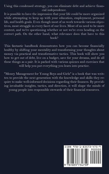 Using this condensed strategy, you can eliminate debt and achieve financial independence. It is possible to have the impression that your life could be more organized while attempting to keep up with your education, employment, personal life, and health goals. Even though most of us work towards various objectives, most struggle in every facet of our lives. Most of us need to be more content, and we're questioning whether or not we're even heading on the correct path. On the other hand, what relevance does that have to this book? This fantastic handbook demonstrates how you can become financially healthy by shifting your mentality and transforming your thoughts about money via practical and transformative tactics. This book will show you how to get out of debt, live on a budget, save for your dreams, and do all these things as a pair. It is packed with various quizzes and exercises that will help you put everything you learn into practice. "Money Management for Young Boys and Girls" is a book that was written to provide the next generation with the knowledge and skills they require to make well-informed decisions regarding their finances. By providing invaluable insights, tactics, and direction, it will shape the minds of young people into responsible stewards of their financial resources.