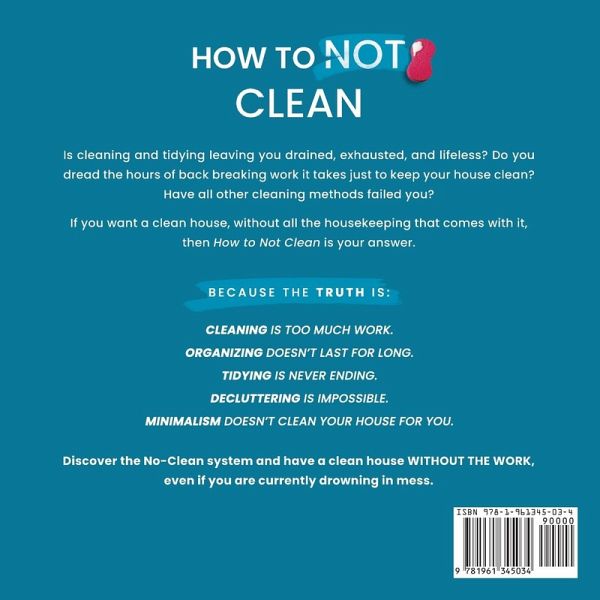 Discover how to have a clean house WITHOUT THE WORK, even if you are drowning in mess. If you want a clean house, without all the housekeeping that comes with it, then How to Not Clean is your answer. Because the truth is: Cleaning is too much work. Organizing doesn't last for long. Tidying is never ending. Decluttering is impossible. Minimalism doesn't clean your house for you. In this book you will discover how to reduce your chores one by one. Even if you have a job and a house full of kids. You no longer need to spend your free time cleaning. The truth about minimalism that no one talks about. The 5 myths of mess and the truth behind the confusion. 3 simple steps to reduce each cleaning task one by one. Why standard cleaning, tidying, organizing, and decluttering do not work. Instant organization without expensive or complex systems. Tips and tricks you can do right now to clean less. And much, much more... Eliminate the need to clean, step by step, chore by chore, with How to NOT Clean