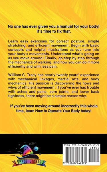 No one has ever given you a manual for your body! It's time to fix that. Learn easy exercises for correct posture, simple stretching, and efficient movement. Begin with basic concepts and helpful illustrations as you tune into your body's movements. Understand what's going on as you move around! Finally, go step by step through the mechanics of walking, and how you can do it more efficiently and with less pain. William C. Tracy has nearly twenty years' experience with mechanical linkages, martial arts, and body mechanics. His passion is discovering the hows and whys of efficient movement. If you've ever had trouble with aches and pains, sore joints, and lower back tightness, there might be a simple reason why. If you've been moving around incorrectly this whole time, learn How to Operate Your Body today!