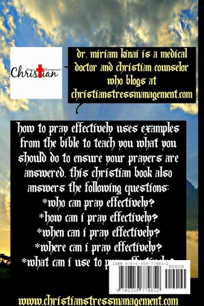 How to Pray Effectively is a Bible study which uses practical examples from the Bible to teach you what you should do to ensure your prayers are answered. This Christian prayer book also answers the following questions: *Who can pray effectively? *How can I pray effectively? *When can I pray effectively? *Where can I pray effectively? *What can I use to pray effectively?