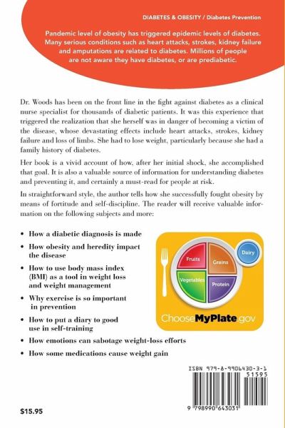 Dr. Woods has been on the front line in the fight against diabetes as a clinical nurse specialist for thousands of diabetic patients. It was this experience that triggered the realization that she herself was in danger of becoming a victim of the disease, whose devastating effects include heart attacks, strokes, kidney failure and loss of limbs. She had to lose weight, particularly because she had a family history of diabetes. Her book is a vivid account of how, after her initial shock, she accomplished that goal. It is also a valuable source of information for understanding diabetes and preventing it, and certainly a must-read for people at risk. In straightforward style, the author tells how she successfully fought obesity by means of fortitude and self-discipline. The reader will receive valuable information on the following subjects and more:
