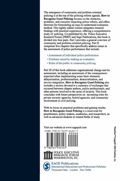 Since the early 1970's, police reform has been a major concern throughout the world. Widespread implementation of various forms of problem-oriented policing, plus the unforeseen decline of crime rates in recent years observed in most Western countries, has focused attention on the need for evaluation studies of policing. How To Recognize Good Policing brings together the research findings and practical experience of acknowledged experts in the field.