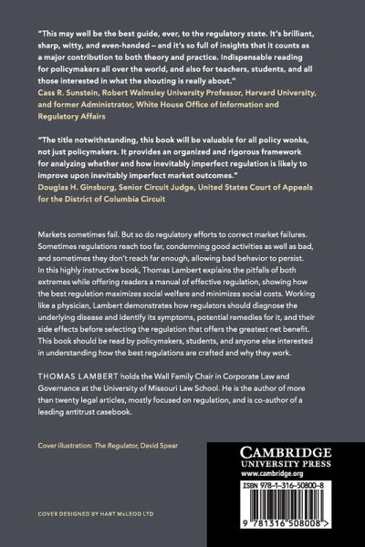 Markets sometimes fail. But so do regulatory efforts to correct market failures. Sometimes regulations reach too far, condemning good activities as well as bad, and sometimes they don't reach far enough, allowing bad behavior to persist. In this highly instructive book, Thomas A. Lambert explains the pitfalls of both extremes while offering readers a manual of effective regulation, showing how the best regulation maximizes social welfare and minimizes social costs. Working like a physician, Lambert demonstrates how regulators should diagnose the underlying disease and identify its symptoms, potential remedies for it, and their side effects before selecting the regulation that offers the greatest net benefit. This book should be read by policymakers, students, and anyone else interested in understanding how the best regulations are crafted and why they work.