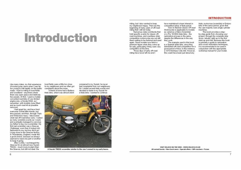 Remember the smell of Castrol R at a 1960s scramble? Or riding a 1970s trials bike through every type of natural obstacle possible? If you want to revisit those memories, or relive the competition of earlier times, this book is for you. Buying, restoring, and riding classic off-road competition bikes is now something that you can do!This book gives enthusiasts of classic off-road competition motorcycles a step-by-step guide to a full restoration. Covering dismantling the motorcycle and its components, restoring and sourcing parts, paint spraying, decals and polishing. With chapters covering engine, frame, forks, fuel, exhaust, seat, brakes and tyres, you'll see how to take a bike from scratch to a full rebuild; then on to safe set-up and general maintenance. Includes chapters focussing specifically on pre-65 and twin shock models.