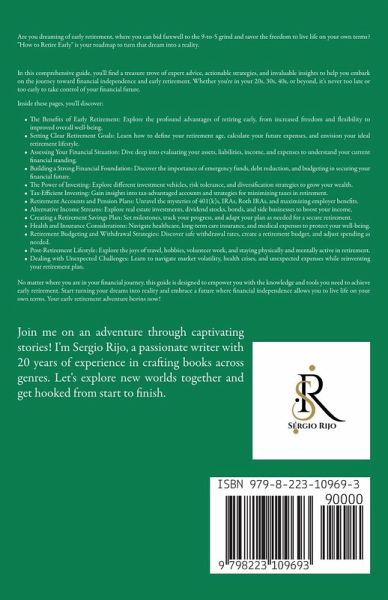 Are you dreaming of early retirement, where you can bid farewell to the 9-to-5 grind and savor the freedom to live life on your own terms? "How to Retire Early: A Guide to Financial Planning and Early Retirement" is your roadmap to turn that dream into a reality. In this comprehensive guide, you'll find a treasure trove of expert advice, actionable strategies, and invaluable insights to help you embark on the journey toward financial independence and early retirement. Whether you're in your 20s, 30s, 40s, or beyond, it's never too late or too early to take control of your financial future. Inside these pages, you'll discover:The Benefits of Early Retirement: Explore the profound advantages of retiring early, from increased freedom and flexibility to improved overall well-being. Setting Clear Retirement Goals: Learn how to define your retirement age, calculate your future expenses, and envision your ideal retirement lifestyle. Assessing Your Financial Situation: Dive deep into evaluating your assets, liabilities, income, and expenses to understand your current financial standing. Building a Strong Financial Foundation: Discover the importance of emergency funds, debt reduction, and budgeting in securing your financial future. The Power of Investing: Explore different investment vehicles, risk tolerance, and diversification strategies to grow your wealth. Tax-Efficient Investing: Gain insights into tax-advantaged accounts and strategies for minimizing taxes in retirement. Retirement Accounts and Pension Plans: Unravel the mysteries of 401(k)s, IRAs, Roth IRAs, and maximizing employer benefits. Alternative Income Streams: Explore real estate investments, dividend stocks, bonds, and side businesses to boost your income. Creating a Retirement Savings Plan: Set milestones, track your progress, and adapt your plan as needed for a secure retirement. Minimizing Lifestyle Inflation: Learn to curb the dangers of lifestyle creep and embrace contentment on your journey to early retirement. Health and Insurance Considerations: Navigate healthcare, long-term care insurance, and medical expenses to protect your well-being. Social Security and Medicare: Maximize your Social Security benefits and understand Medicare for a smooth transition into retirement. Protecting Your Wealth: Explore estate planning, wills, trusts, and strategies to minimize estate taxes. The Psychology of Early Retirement: Dive into the emotional aspects of retirement, find purpose, and avoid common post-retirement pitfalls. Finalizing Your Retirement Plan: Revisit your retirement goals, make timeline adjustments, and address last-minute financial considerations. Pre-Retirement Checklist: Prepare for retirement by addressing financial tasks, legal matters, and the transition itself. Retirement Budgeting and Withdrawal Strategies: Discover safe withdrawal rates, create a retirement budget, and adjust spending as needed. Post-Retirement Lifestyle: Explore the joys of travel, hobbies, volunteer work, and staying physically and mentally active in retirement. Dealing with Unexpected Challenges: Learn to navigate market volatility, health crises, and unexpected expenses while reinventing your retirement plan. Additional Resources and Tools: Access recommended books, websites, worksheets, and calculators to aid your retirement planning journey. No matter where you are in your financial journey, this guide is designed to empower you with the knowledge and tools you need to achieve early retirement. Start turning your dreams into reality and embrace a future where financial independence allows you to live life on your own terms. Your early retirement adventure begins now!