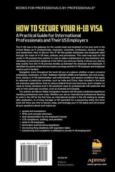 The authors are Silicon Valley immigration lawyers with 60 years combined experience handling professional work visas. Whether you are an international professional desiring to work in the US for the first time, an international student in the US wishing to remain after graduation, or a hiring manager or HR specialist for a sponsoring entity, thisshort book will show you how to secure, maintain, and leverage your H-1B visa and answer all yourquestions about: