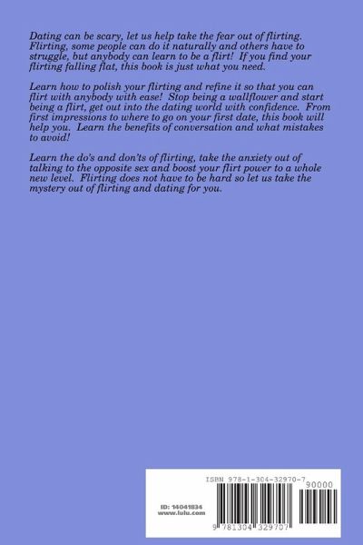 Dating can be scary, let us help take the fear out of flirting. Flirting, some people can do it naturally and others have to struggle, but anybody can learn to be a flirt! If you find your flirting falling flat, this book is just what you need. Learn how to polish your flirting and refine it so that you can flirt with anybody with ease! Stop being a wallflower and start being a flirt, get out into the dating world with confidence. From first impressions to where to go on your first date, this book will help you. Learn the benefits of conversation and what mistakes to avoid! Learn the do's and don'ts of flirting, take the anxiety out of talking to the opposite sex and boost your flirt power to a whole new level. Flirting does not have to be hard so let us take the mystery out of flirting and dating for you.