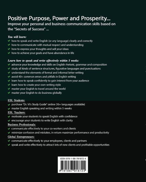 This is a book summary for the master copy "How to Speak and Write Correctly" by Joseph Devlin and Vivian W. Lee (2015). This complementary study guide is translated into 16+ written languages. Each study guide has a 3-page colored infographic, English book summary by chapter, a 5-week learning schedule, two mini quizzes, and many FREE e-Articles on self-help business writing tips online. When you can communicate clearly and concisely in English speaking and writing, you gain valuable lifelong skills to resolve social conflicts, conquer business challenges, and overcome cultural barriers. Buy…mehr