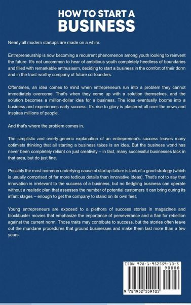 If you've always wanted to start your own business but don't know where to start and how to do it successfully, then keep reading... Are you tired of always doing what your boss tell you? Do you dream about having your own business? Do you have ideas but don't know how to make business of it? If so, then you've come to the right place. You see, having a successful startup doesn't have to be difficult. In fact, it's easier than you think. Here's just a tiny fraction of what you'll discover:How to come up with an amazing business plan How to manage your finances and get the business up and running Where you can learn from the best and most experienced in the field How to form partnerships How to take care of the legalities involved How to hire an amazing team Be the best at marketing and advertising How to grow in a competitive market ...and much, much more! Take a second to imagine how you'll feel once you finally become the successful business owner that you've always dreamed of becoming, and how your family and friends will react when they can finally share in the joy and success with you? So even if you're failing miserably in the field that you specialize in, you can get up off the ground with "How to Start a Business". And if you have a burning desire to be one of the greats that have an amazing story of starting from scratch and joining the big guns in the world of business, then scroll up and click "Add to Cart."