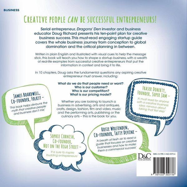 This book is an invaluable resource for any creative with a great business idea. Starting your own business does not need to be a complicated and daunting process and serial entrepreneur, Dragon's Den investor and business educator Doug Richard, shows you how. He sets out a ten-point plan teaching creatives how to shape their startup business into a success. Written in plain English, without the dense text and technical jargon of other business books, and illustrated with visual cues to help the message stick, Doug's practical advice is accessible to all. Real-life case studies are interspersed throughout from successful creative startups that include, Tatty Devine, Paul Smith, Time Out and LoveFilm, which expand upon the theory and bring it to life. In 10 chapters, Doug asks the fundamental questions any aspiring creative entrepreneur must answer. By following the questions from start to finish, and working through the get your hands dirty activities, you will get the theory first and then apply that theory in a practical way to the real world and your own business. By the time you reach the last question, you will have the foundation of a very solid creative business. You will answer: What do we do or need that people need or want? Who is our customer? Who is our competition? What is our pricing model? And more! Doug walks you through the process for researching, answering and, ultimately, overcoming the challenges posed by these questions for your own business plan. Whether you are passionate about craft, design, advertising, antiques, film and video, music, performing arts, or any other creative field, this fantastic guide will help you start your business today